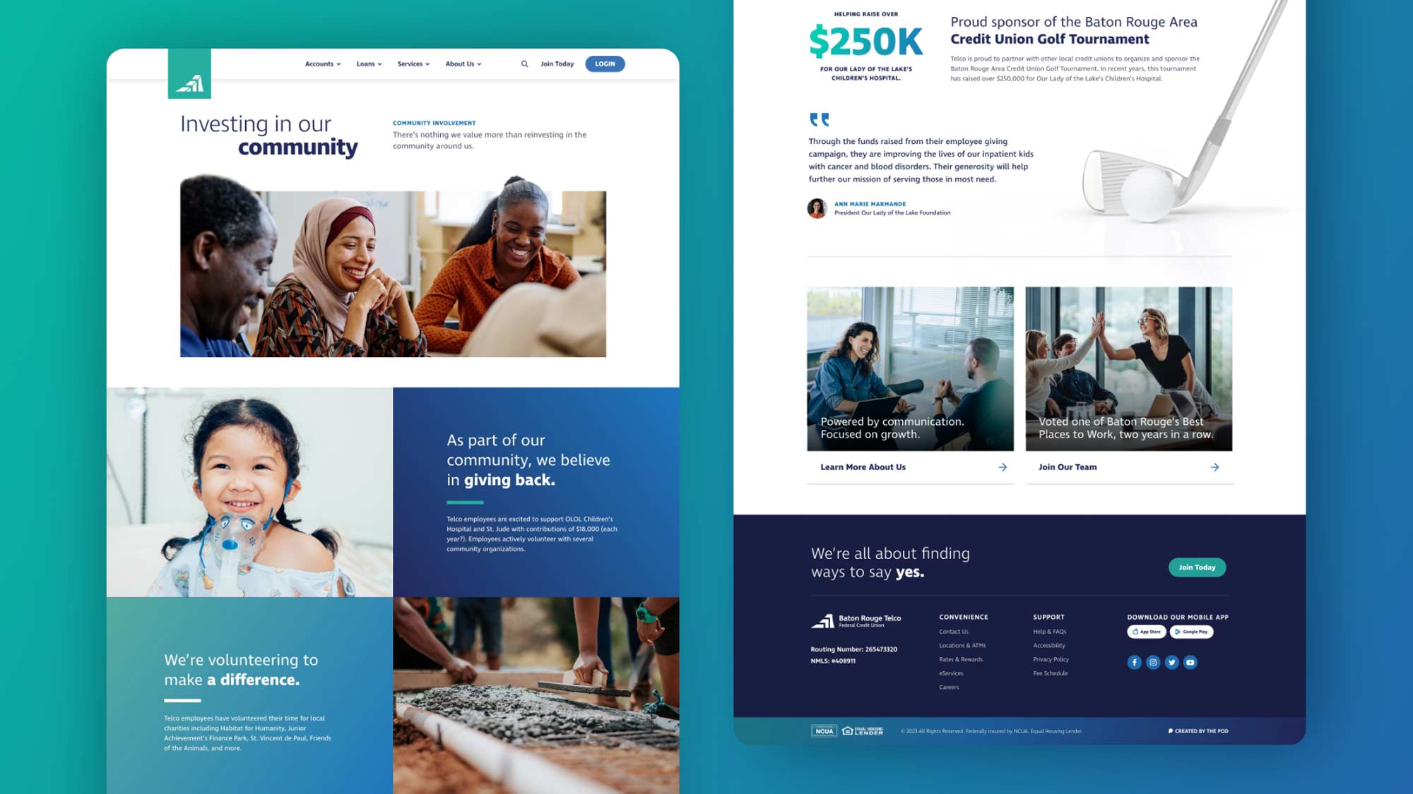Over the years, Baton Rouge Telco Federal Credit Union's website had become too wordy and visually outdated. They felt that it no longer truly represented them as an accessible, innovative, and tech-forward institution. After all, they had a vision to become the primary financial partner for their members by going above and beyond in service and technology, and they knew their website should reflect that.